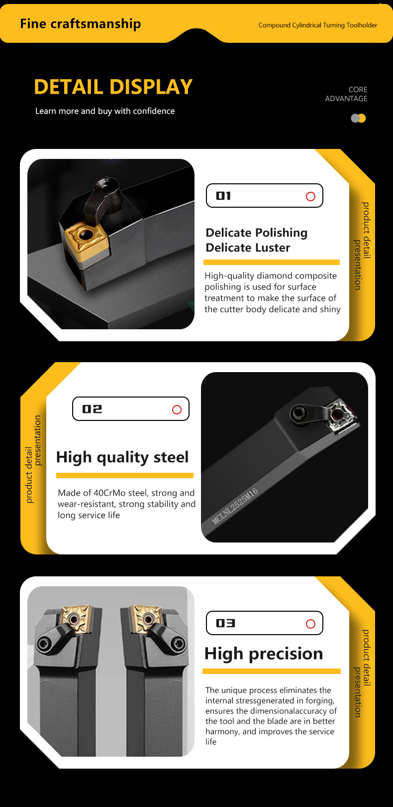 İşleme yeteneklerinizi geliştirin: İndekslenebilir torna takımlarımızla hassas işleme potansiyelinizi ortaya çıkarın. Bu takım seti, çeşitli MCLNR ve MCLNL modelleri sunarak hem profesyoneller hem de kendin yap meraklıları için sorunsuz ve yüksek hassasiyetli bir kesme deneyimi sağlar. Her seferinde kusursuz işleme sonuçları elde edin.